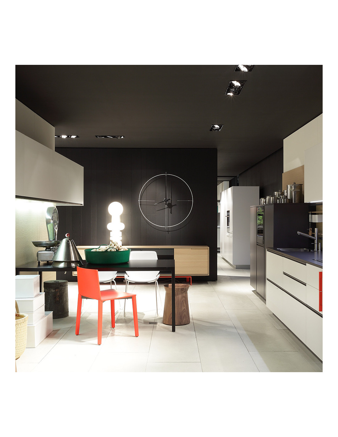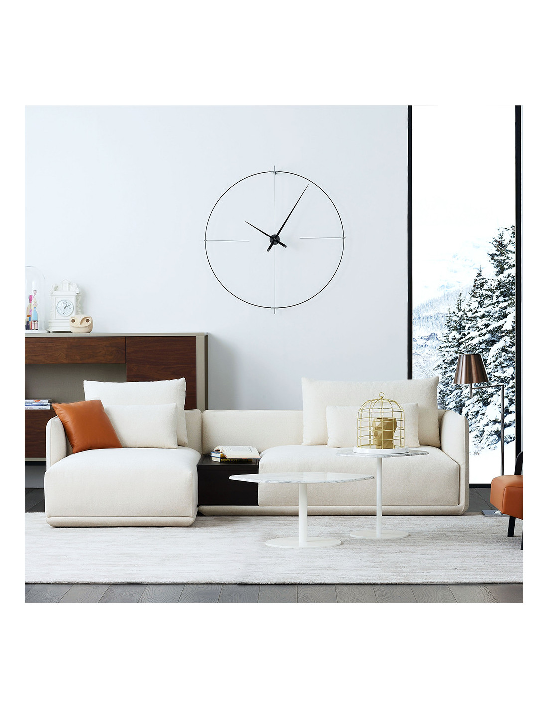 In the case of placing it on walls of dark tones, try to ensure that the clock receives enough light to shine with its natural charm. Its ring and parts in general are thin so that the minimalist approach goes well with it.