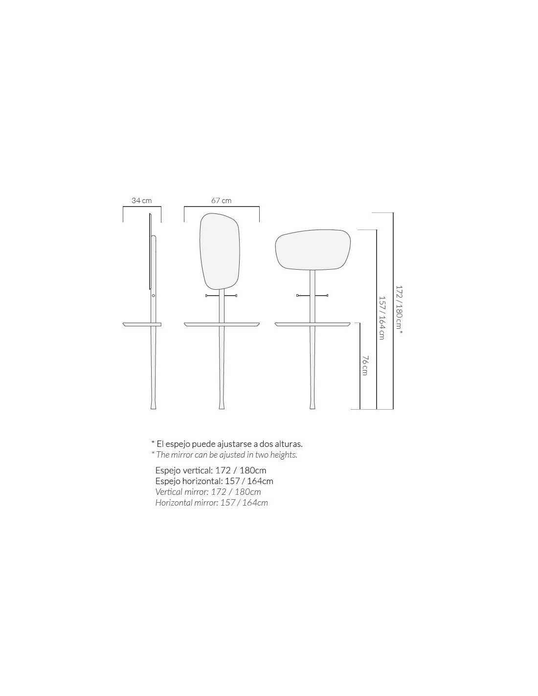 Structure and mirror adjustable to different dimensions.