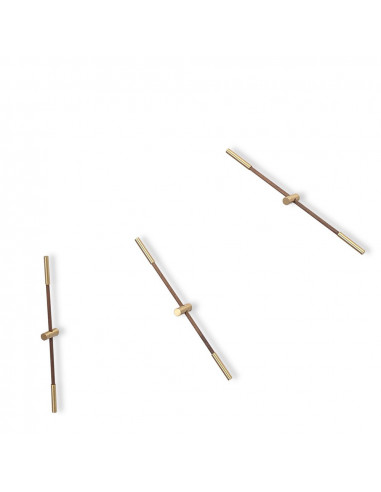 The two handles of the Merlin 4 Gold Clock are made of walnut and its typical dark brown hue. At the same time, the handles have small golden details, two delicate circles made of polished brass at each end to continue with the theme of combining textures.