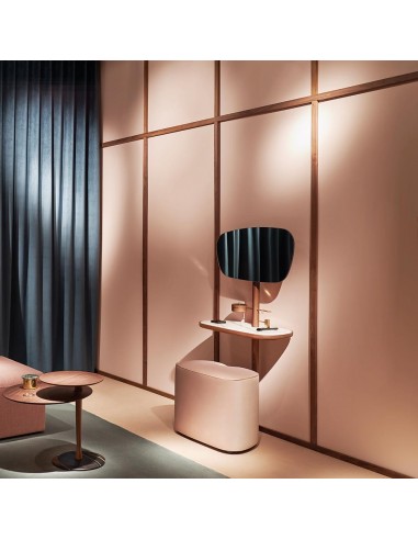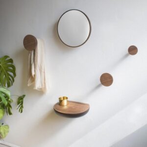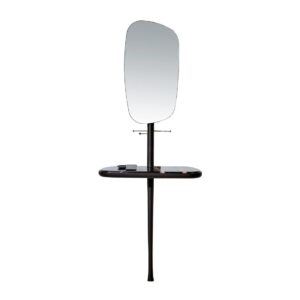The mirror can be adjusted to two heights to cover all kinds of needs. Materials: Solid natural walnut or black stained ash and polished brass details.