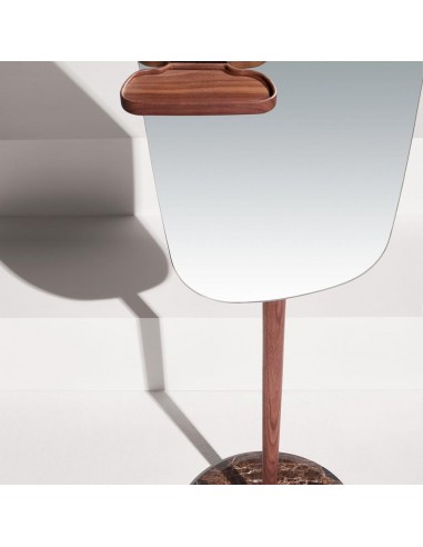 The modern standing mirror by Nomon is part of the Moments collection by Andrés Martínez for Nomon Home. The mirror stands out for the original natural walnut tray with soft lines made by hand from the body.